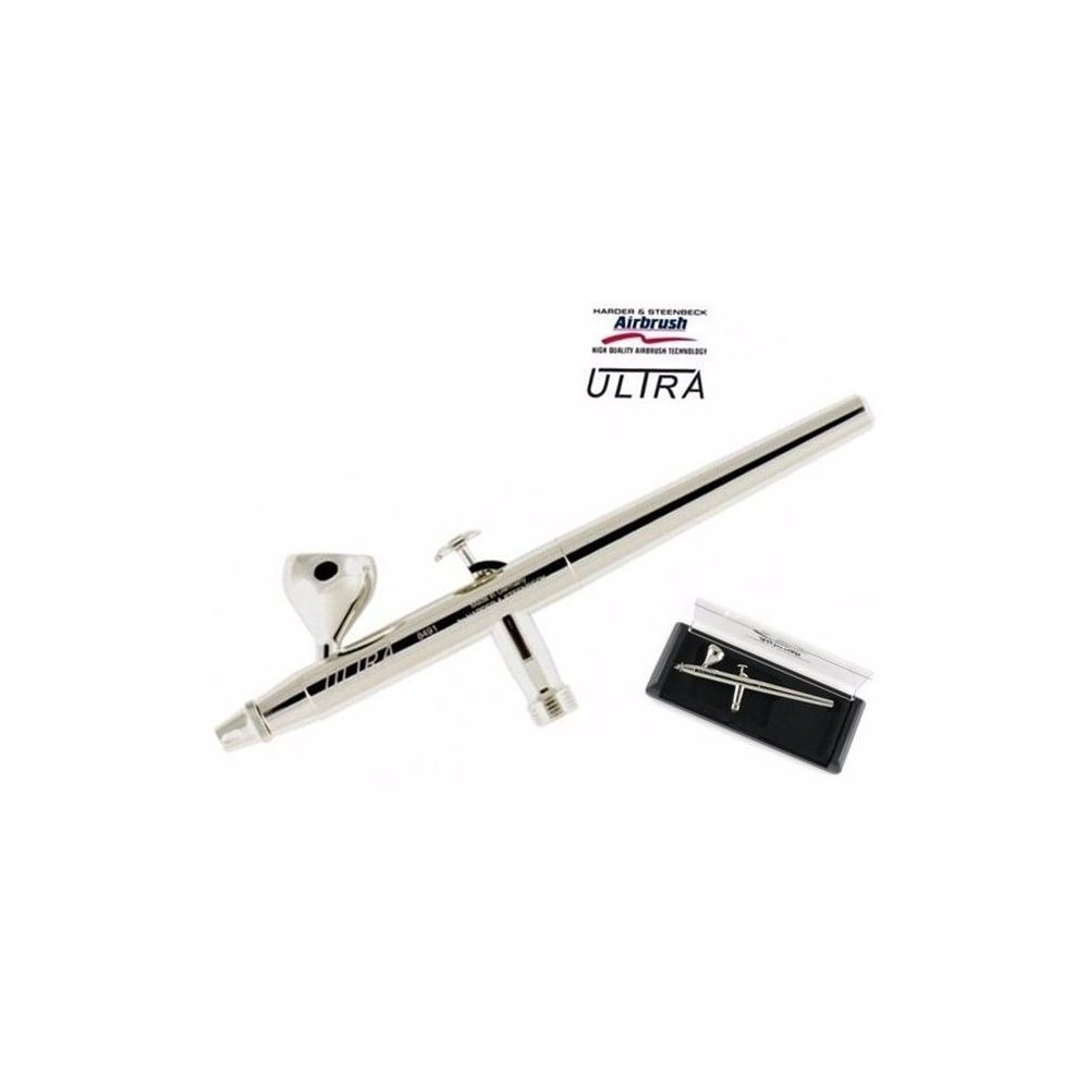 Está provisto de una función de doble acción independiente alimentada por gravedad. El Ultra incluye un juego de boquilla de 0,2 mm. y deposito de 2 ml.