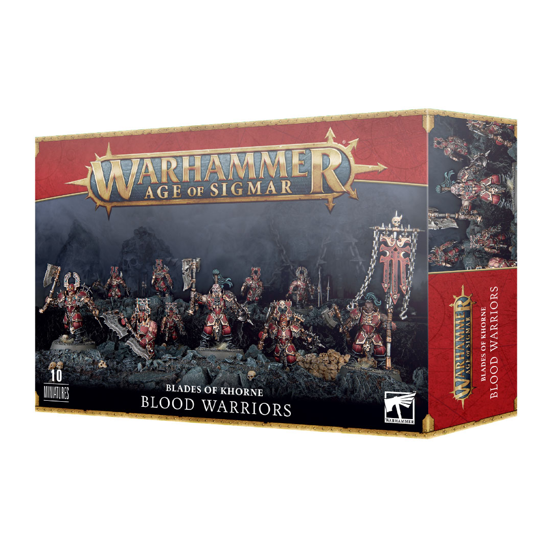 Criaturas dominadas completamente por su rabia, que solo conocen la bruma roja de la ira, cuya furia es tan intensa que emana de ellos en ondas de calor. Los Blood Warriors de Khorne son una masa de agresividad y sed de sangre. Ni siquiera abatirlos supone un respiro, pues hasta los guerreros más malheridos siguen luchando presas de un trance frenético.
