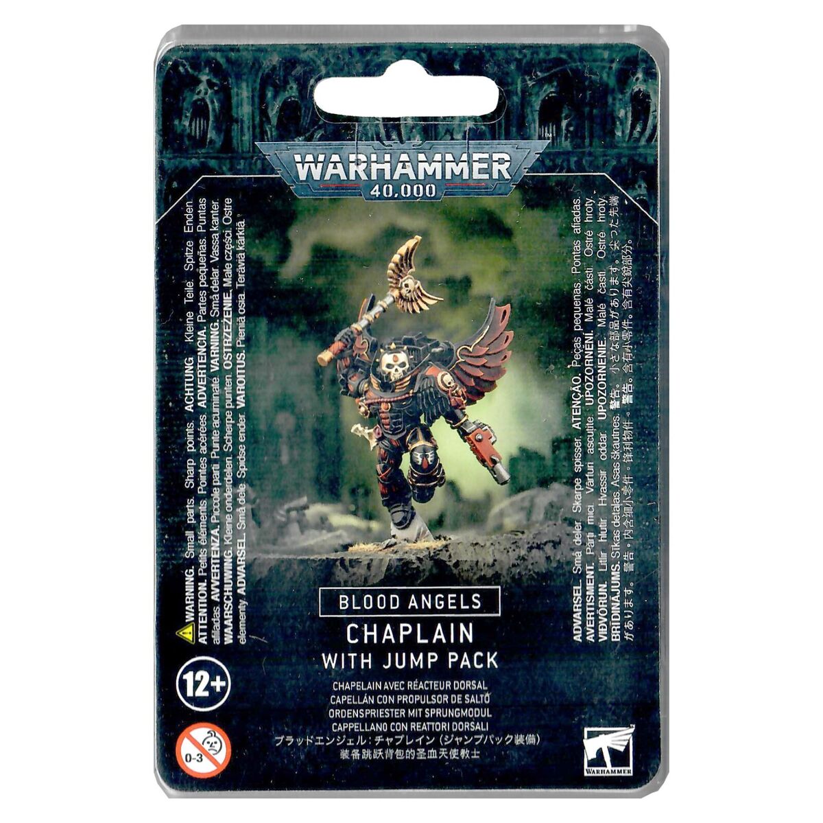Los líderes espirituales del Capítulo, rugen en su armadura negra cubierta de símbolos de muerte. Los Chaplains son un icono aterrador de la muerte entre los Space Marines, temidos y respetados por todos aquellos que los encuentran. Los Chaplains de los Blood Angels deben buscar constantemente signos de la Rabia Negra ya que solo ellos son capaces de comunicarse con aquellos que han sucumbido a ella y guiarlos hacia la gloriosa batalla. Este Chaplain porta un propulsor de salto que le permite liderar con el ejemplo y saltar directamente al corazón del adversario.