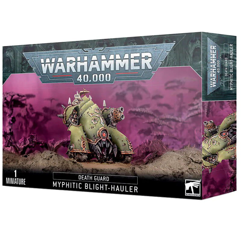 El Myphitic Blight-hauler es una desagradable combinación de máquina y carne pútrida. Visto desde delante parece alguna clase de grotesco vehículo acorazado, con una carcasa curva que muestra el símbolo de Nurgle y dos grandes orugas cubiertas. Lo que le hace distinto de un vehículo de ataque ordinario, sin embargo, son las fauces dentadas de su base. Desde detrás, el horror no termina: hay una tercera oruga visible, junto con una masa de carne fofa, fijada a la maquinaria con correas y metal. El Myphitic Blight-hauler viene armado con un cañón de fusión y un lanzamisiles, montados uno a cada lado de su chasis.