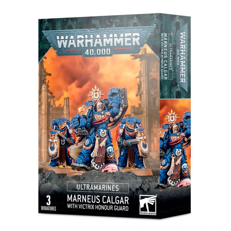 Marneus Calgar, señor de Capítulo de los Ultramarines, no es solamente un guerrero consumado, sino también un estratega de gran talento. Es el maestro de Ultramar, una gran extensión espacial en la asediada Franja Este. Fue él quien lanzó la contrainvasión del planeta Vigilus infectado de xenos con los veteranos combatientes Lethro Ados y Nemus Adranus, dos de sus aliados más leales de la Victrix Guard, siempre a su lado.