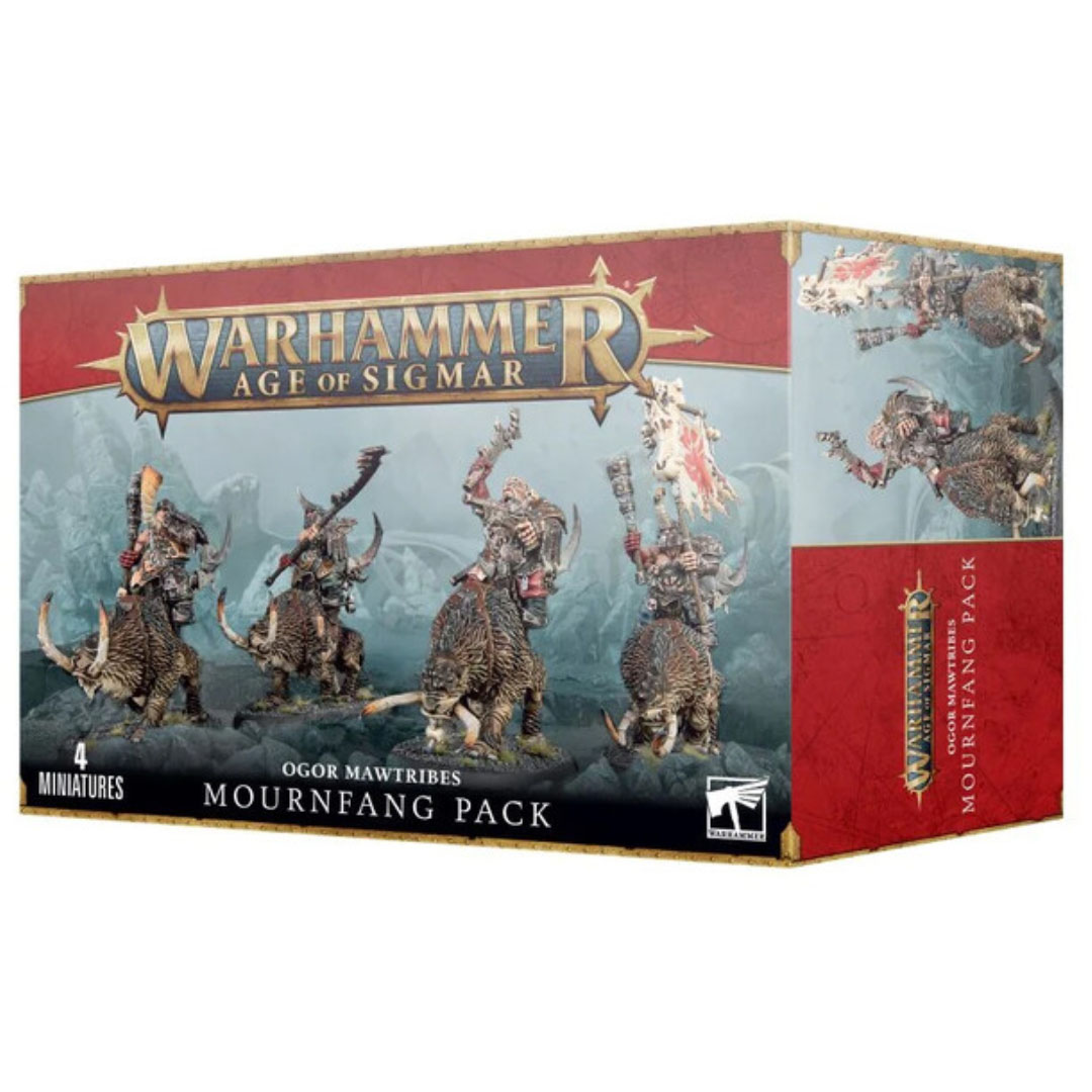 Como núcleo de un Alfrostun de Beastclaw Raiders, los Ogors montados en Mournfangs siempre están en la primera línea de cualquier incursión. Empuñan mazas, espadas y pistolas, y se les da muy bien bloquear el asalto enemigo antes de arrollar con gran violencia. Las bestias sobre las que cabalgan son igualmente temibles, pisoteando y corneando a todo aquel que tenga la desgracia de no poder apartarse a tiempo.