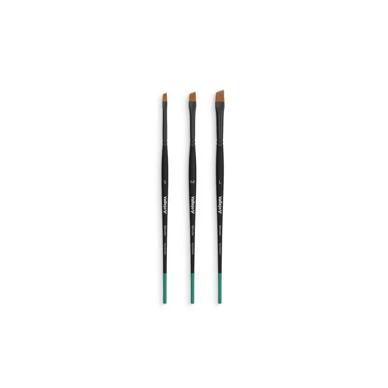 Su punta cortada en ángulo te permite pintar zonas pequeñas con precisión y crear efectos de fundido al utilizar el borde afilado para cargar pintura y el resto de las fibras para suavizar la pincelada.